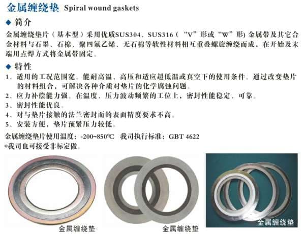 金属缠绕垫片是缠绕在一起的,但是,材料从金属到非金属各不相同,但纯石墨和金属几乎不可能在不加入的情况下融合,而金属和非金属混合,非常大的材料集的优点,所以金属缠绕垫圈的使用范围很广。由于其特殊的生产工艺,使其性能优良,被称为弹性及其好的垫圈。