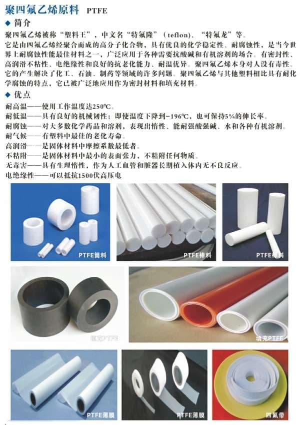 这是一种由四氟乙烯聚合而成的高分子化合物,具有良好的化学稳定性,耐腐蚀性是目前*好的材料之一,广泛用于各种酸,碱和有机溶剂。它具有密封性,高润滑性,不粘性,电绝缘性和良好的抗老化能力,以及优异的耐温性。聚四氟乙烯本身对人体无毒。它的生产解决了化学工业,石油和制药领域的许多问题。与其他塑料相比,聚四氟乙烯具有耐化学性,并已广泛用作密封材料的填料。