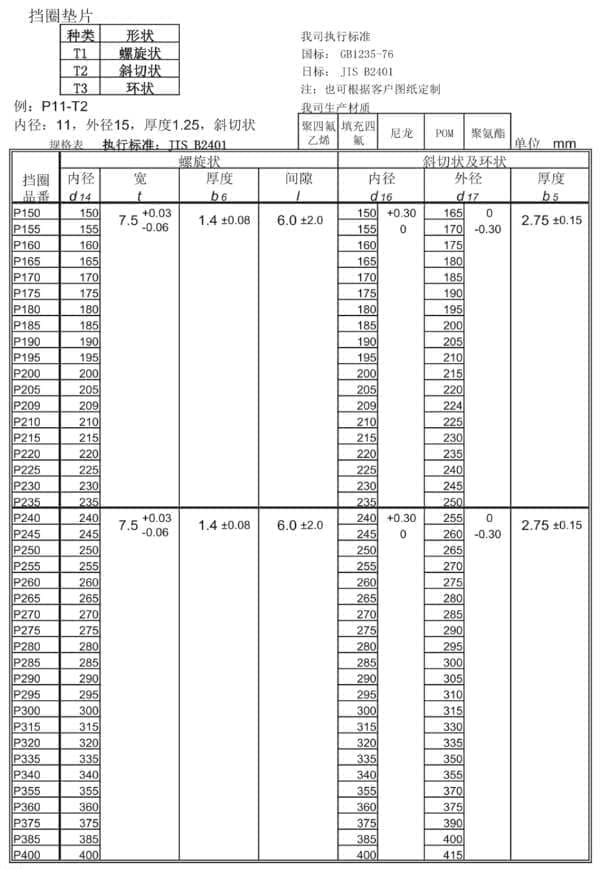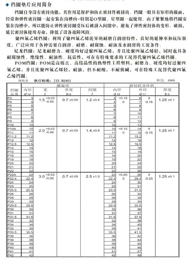 POM挡圈:POM是一种高熔点、高结晶度的热塑性工程塑料,耐磨性和硬度均优于聚四氟乙烯,比聚四氟乙烯轻,耐油,不耐酸,不耐强碱,它可以在特殊工作条件下更换聚四氟乙烯挡圈。