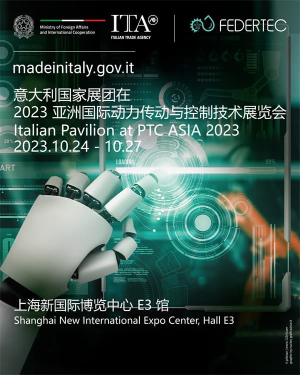 第27届亚洲国际动力传动与控制技术展览会(PTC ASIA)将于2023年10月24日至27日在上海新国际博览中心举行。届时,意大利对外贸易委员会将联合FEDERTEC——意大利机电一体化技术与流体动力元件、动力传动、智能自动化及工业产品和过程控制协会——携7家的意大利动力传动企业组成意大利国家展团,向与会者展示“意大利制造”更具创新性的产品和技术。同时,这也是意大利国家展团在国际经贸往来恢复正常后再次亮相该领域的国际性展会,并闪耀回归PTC Asia。