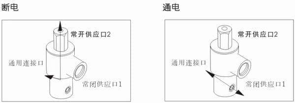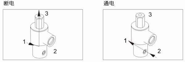 RETZ微型三通电磁阀有三个口,分为常闭型,常开型,换向型,通用型,自动排气型。常闭型是一个入口,一个出口,一个排放口。当线圈断电时,弹簧作用铁芯【二端装有密封件】封闭主阀口,入口和出口介质不流通,出口和排放口相同;当线圈通电时,电磁力及介质压力克服弹簧力使动铁芯【二端装有密封件】向上移动至静铁芯,此时入口和出口相通,排放口关闭