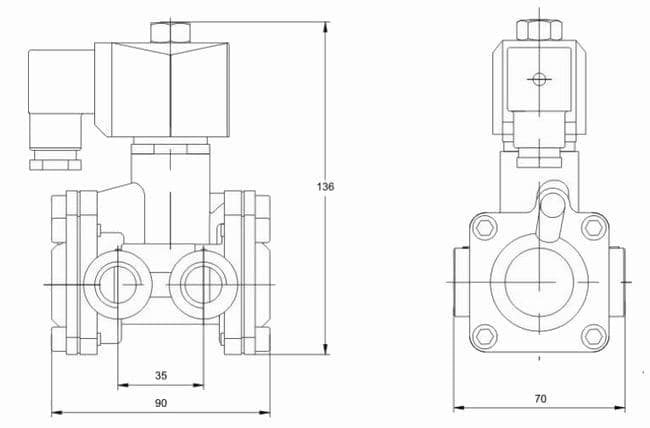 进口二位三通先导式膜片电磁阀外形尺寸图--