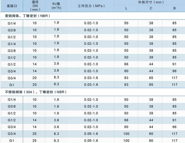 进口二位二通膜片式电磁阀技术参数--