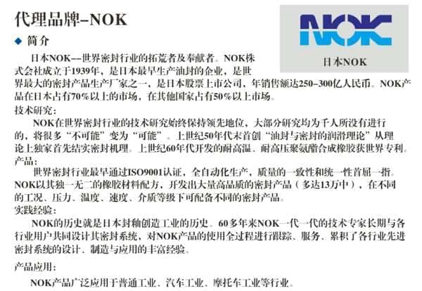 NOK产品广泛应用于一般工业,汽车工业,摩托车工业等行业