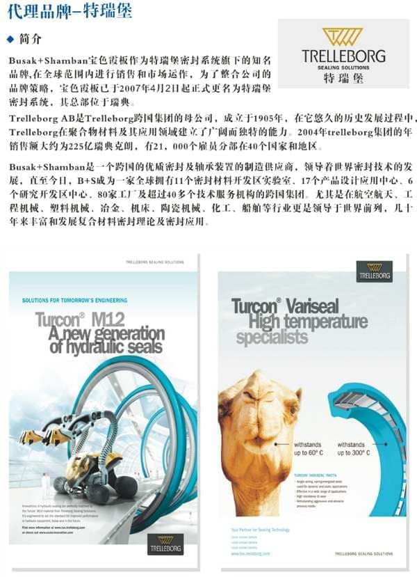 Busak+Shamban宝色霞板作为特瑞堡密封系统下的著名品牌,为了整合公司的品牌战略,在全球范围内进行销售和市场运作。宝色霞板已于2007年4月2日起正式更名为特瑞堡密封系统,其总部位于瑞典。
