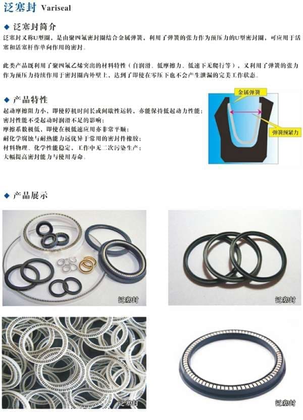 泛塞封,又称U形圈,是一种与金属弹簧相结合的聚四氟乙烯密封圈,采用弹簧张力作为预压力的U型密封圈,可应用于活塞和活塞杆的单向密封作用。