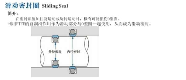 当往复运动或旋转运动施加到密封部分时,很可能O型圈被损坏。该PTEE装置的自润滑功能与O型圈一起作为滑动部件使用,形成滑动密封。