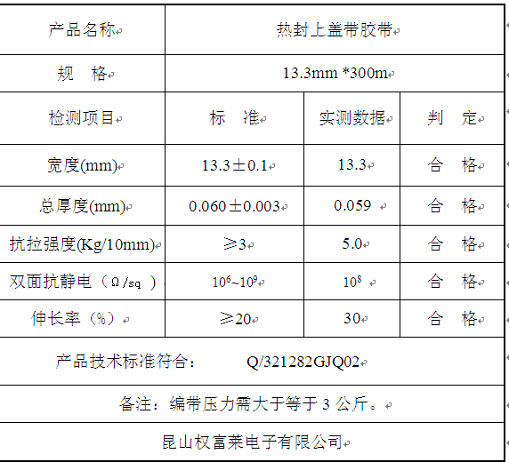 ;我们为你提供匹配**的热封上盖带,使元件一致精确的封装;公司目前经营的热封上盖带相