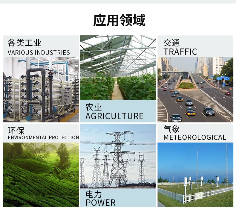 工业数据采集、现代化农业建设、环境信息监控、冷链物流运输行业、基建安防远程监控