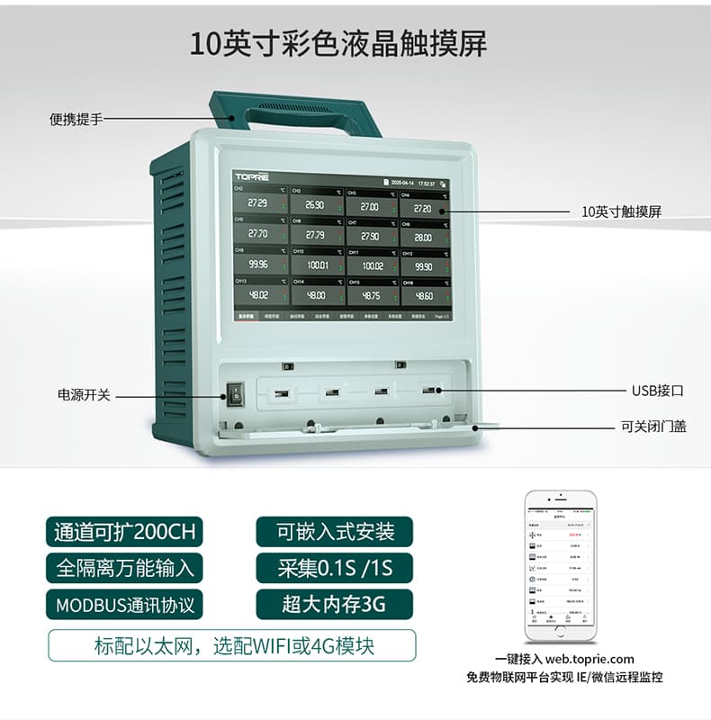 【拓普瑞】TP1000 无纸记录仪触摸无纸记录仪多功能记录仪