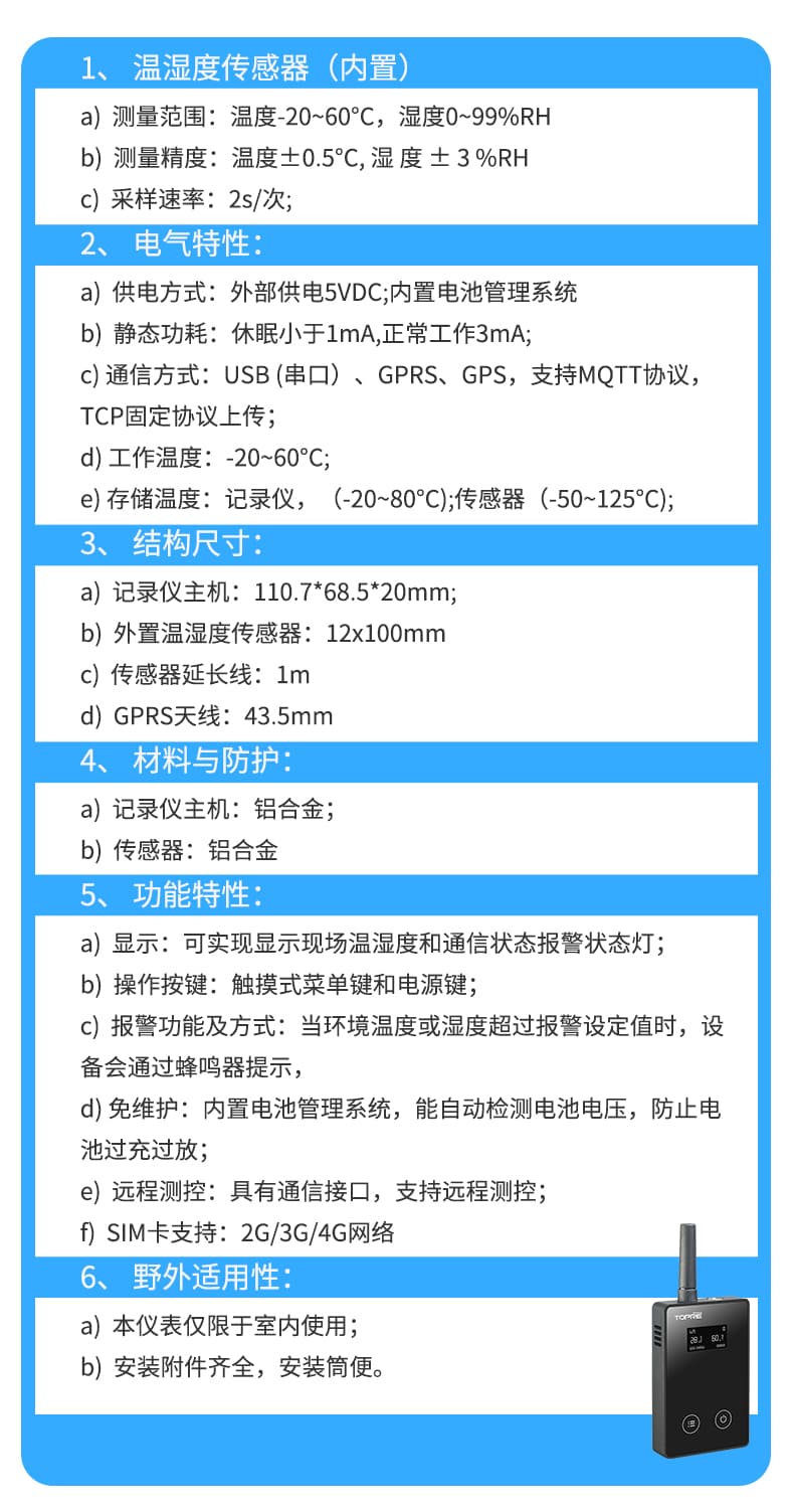 【拓普瑞】TP500温湿度记录仪便携式温湿度表温湿度在线监测