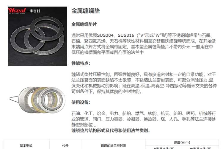 我司制造的缠绕式密封垫片结构设备合理,具有良好的密封性能和压缩回弹性级,能适应高温、深冷、有空及操作参数急剧变化的要求。垫片本体上环可以加内外定位加强环,用户安装时易于定位,同时能起到保证垫片本体,防止过量压缩的作用,因而广泛应用于石油化工、炼油、火力发电、轻纺制药、天然气管道、阀门等行业。