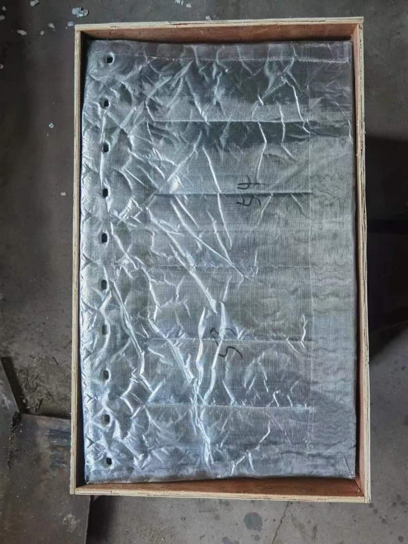 中间为耐高温隔热 的高温纤维棉经高温整形的板材,按客户提供的窑头窑尾体规格放样裁剪成能够贴合紧密,搭接的基材。二层包裹高温反射膜,达到不透气密封。外层由手工把镍丝网按裁剪基材包裹用镍丝缝制。确保碳硅镍复合板的柔韧性、能够随回转窑筒体不规则运转而变形,起到隔热密封作用。硕晟碳硅镍复合板为每条窑单独放样,保证产品质量。欢迎新老客户来图定制来电洽谈。