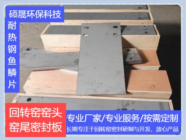 - **迷宫+鱼鳞片密封装置:这种结构通过固定在头尾罩上的金属鳞片与旋转筒体上摩擦环的接触实现密封。耐热钢鱼鳞片(摩擦板)、碳硅铝复合板(密封体)、钢板鱼鳞片(压板)依次在椎体法兰上用螺栓连接固定,耐热钢鱼鳞片紧贴冷风套上,然后用张紧装置实现无间隙密封。